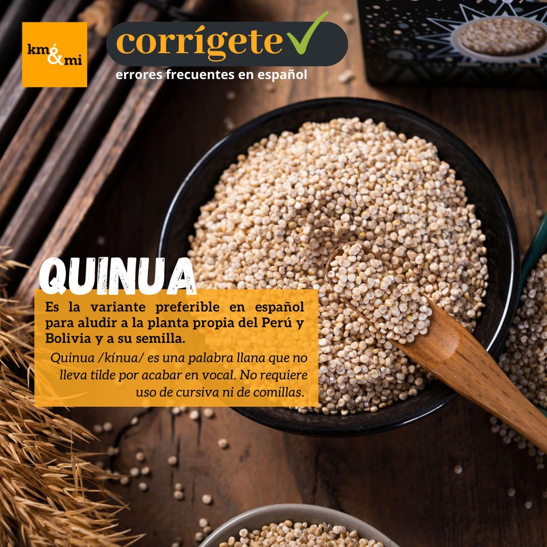 Entonces, si quinua es la opción más recomendada, ¿por qué es «quinoa» la palabra que solemos ver en casi todos los envases que podemos encontrar en el supermercado? Es difícil asegurarlo a ciencia cierta, pero probablemente se deba al hecho de que la forma de referirse a esta semilla en el mundo anglosajón es quinoa (UK /ˈkiːnwɑː/ US /kɪnˈwɑː/), y es de sobra conocido el influjo que tiene el inglés para marcar el ritmo en lo que respecta a la introducción de nuevos términos en una lengua.
