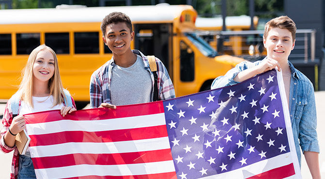 Durante la duración de tu año escolar, reconocerás muchas cosas de las series y las películas estadounidenses. ¡Podrás ir a clase en el típico autobús amarillo y tendrás tu propia taquilla! Tu año escolar comenzará entre finales de julio y comienzos de septiembre. Además, también celebrarás las festividades estadounidenses más conocidas: prepárate para pasar una velada aterradora en Halloween o para dar buena cuenta del increíble banquete que organizará tu familia para celebrar Thanksgiving por todo lo alto.